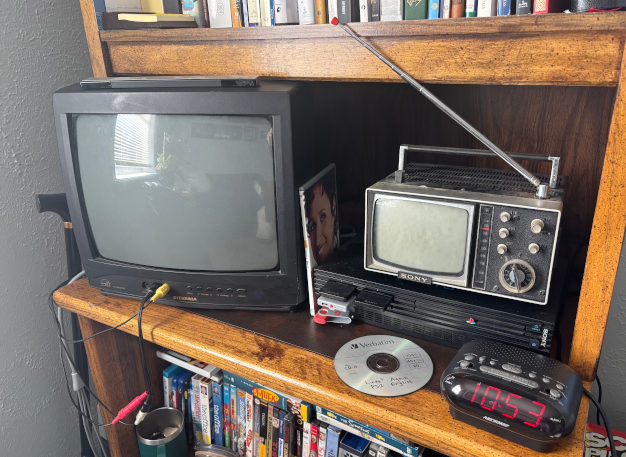 Pictured: Sylvania CRT TV, fat PS2 with original Sony network adapter with SATA HDD mod with a mini/portable Sony CRT TV on top c: (Can you read what game is on that disc in front of the PS2?)