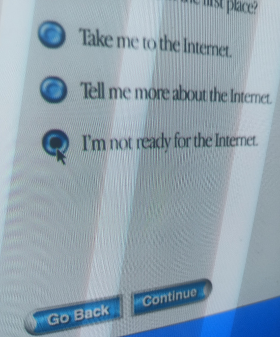 And from all the times I've installed and re-installed Mac OS 9, I have to have this image somewhere on my website. This is probably the funniest line of text ever put into an operating system. No, Apple, I don't think anyone was ready for the internet.