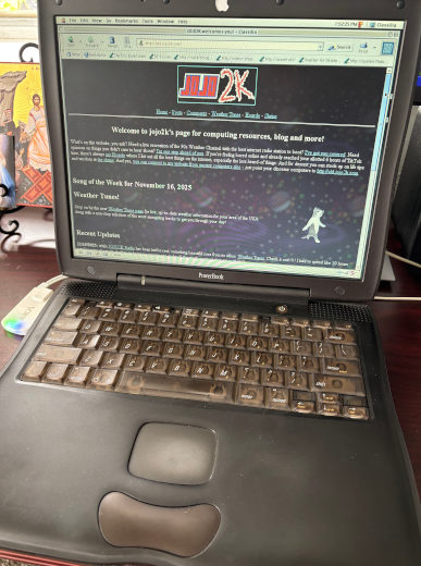 - Apple PowerBook G3 "Kanga." Picked up this bad boy at VCFSW 2025 - seller said it wasn't booting. Its battery was horrendous, but another charger allowed it to boot into what seemed to be a completely original configuration/install of Mac OS 9. The browser's history went all the way back to like 2003 when it was accessing then-live sites just like any other computer. I gave it a much needed tear-down and bath with contact cleaner, stuck another (still dead) battery in it since the old one had, uh, seen better days. The real apple (ha) of my eye in classic Apple laptops was the Pismo though, so I sold this one to fund buying the Pismo I have now. Hope you're having fun out there, Kanga! Long live PowerPC.